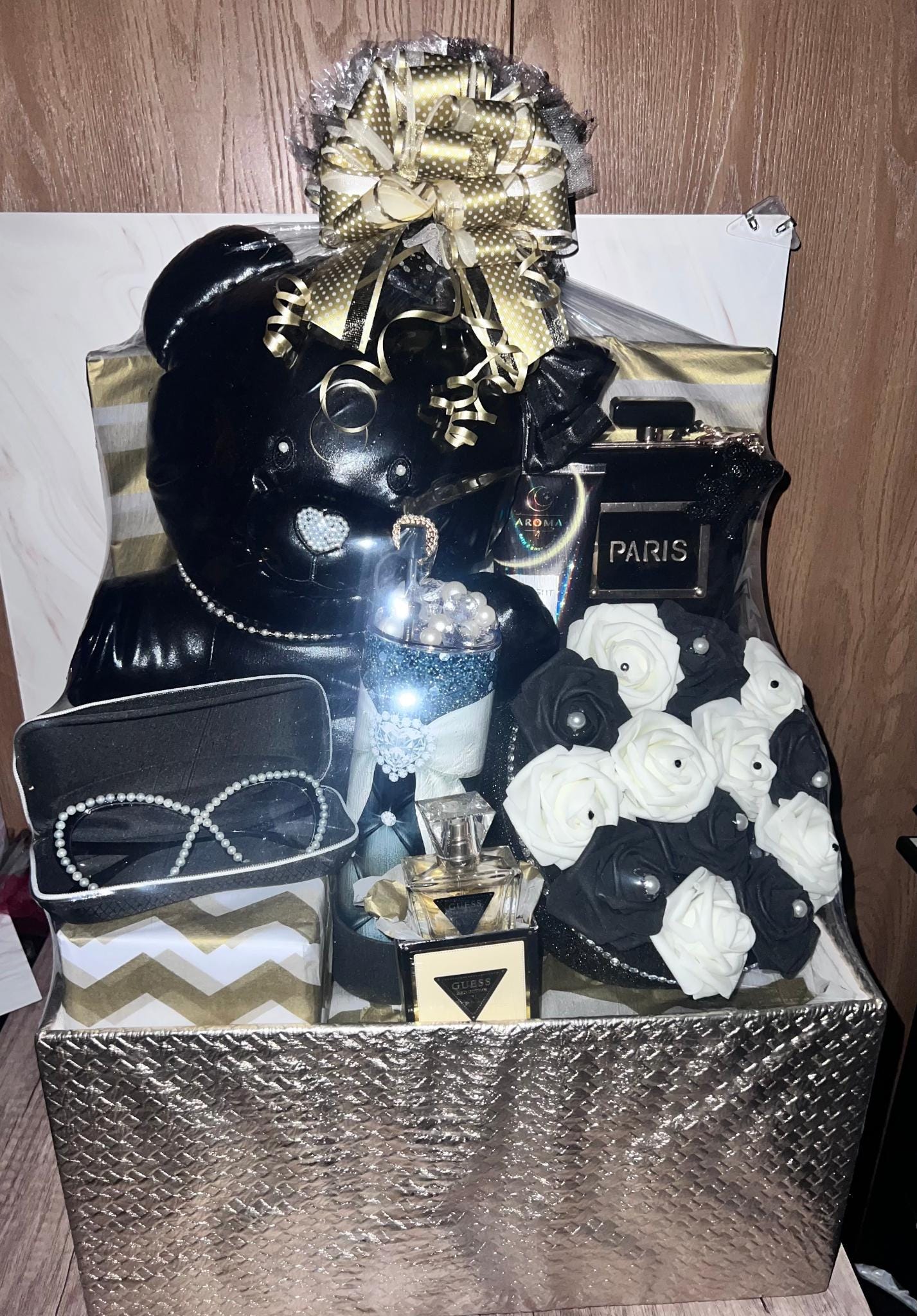 Indulge her in a world of elegance, sophistication, and timeless glamour with this Black & Gold Luxe Pearl Edition Gift Basket — a breathtaking, couture‑inspired collection curated for women who adore luxury with a bold, feminine edge. Every piece is coordinated in rich black, radiant gold, and luminous pearls, creating a show‑stopping gift that feels exclusive, intentional, and unforgettable.